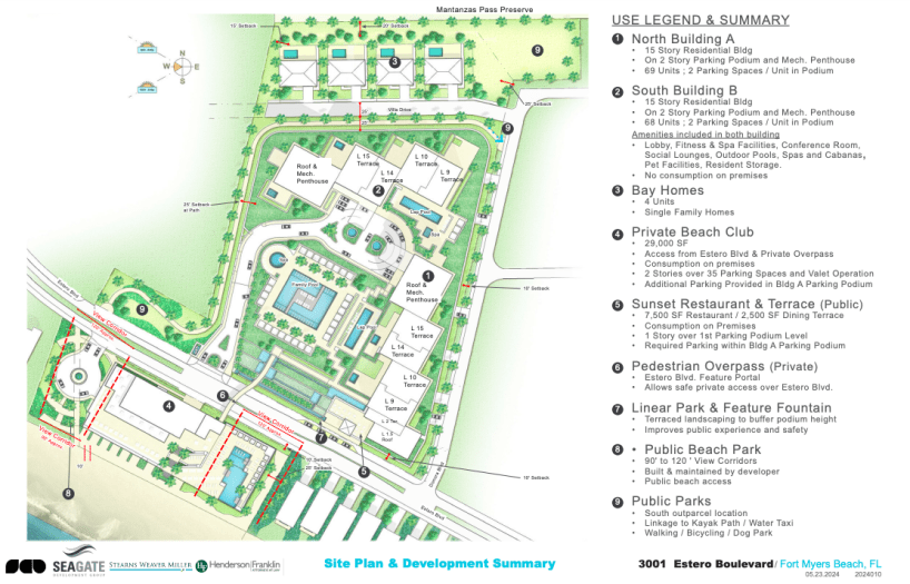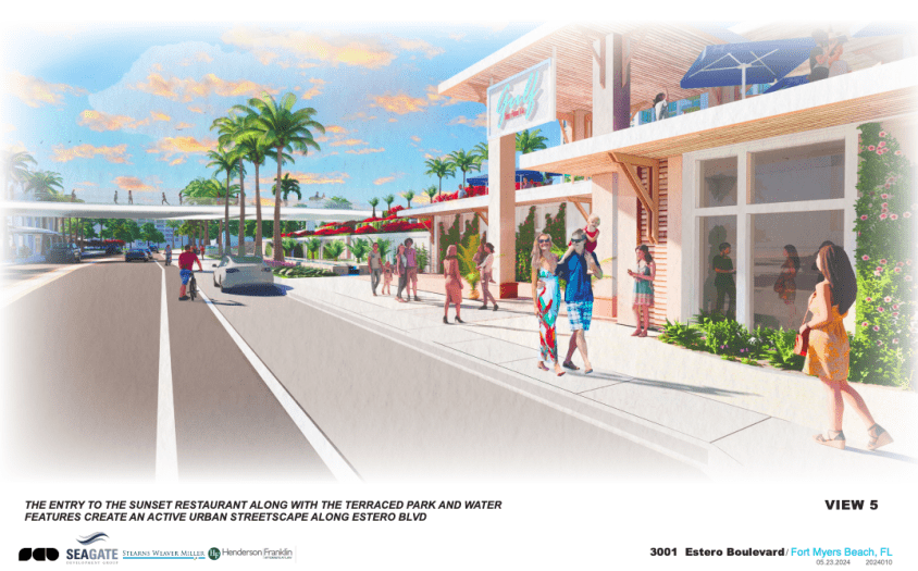 Seagate Development Group purchased the former Red Coconut RV Park property for $52 Million in September of 2023, a year after it was decimated by Hurricane Ian. The 10-acre property encompasses two parcels on either side of Estero Boulevard. Since September, Seagate Development Group has worked with the city and gathered public input to create a vision for the prestigious property, which has finally been revealed.