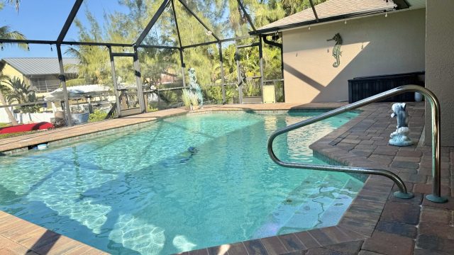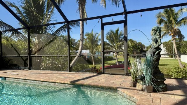 A couple of streets over, this three-bedroom, two-bath Gulf-access home offers the best of both worlds—boating and poolside relaxation. With 1,900 square feet of bright, open living space, a private dock, and a giant sparkling pool overlooking the water, this home captures the essence of the Southwest Florida lifestyle. Cruise to the Gulf for fishing or sunset trips, or unwind at home surrounded by lush tropical serenity. This home has also stayed high and dry through all storms.