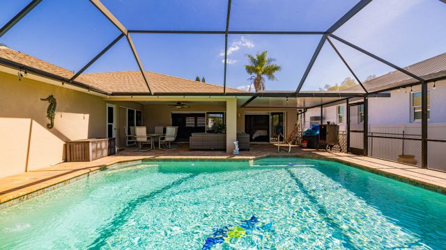 A couple of streets over, this three-bedroom, two-bath Gulf-access home offers the best of both worlds—boating and poolside relaxation. With 1,900 square feet of bright, open living space, a private dock, and a giant sparkling pool overlooking the water, this home captures the essence of the Southwest Florida lifestyle. Cruise to the Gulf for fishing or sunset trips, or unwind at home surrounded by lush tropical serenity. This home has also stayed high and dry through all storms.