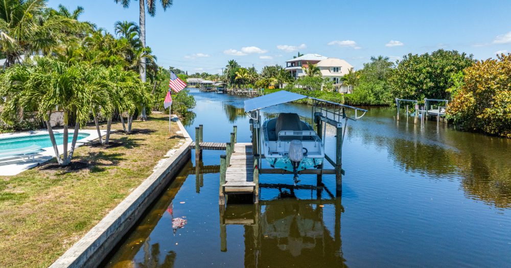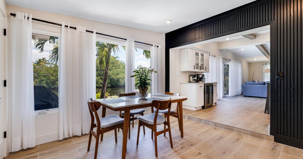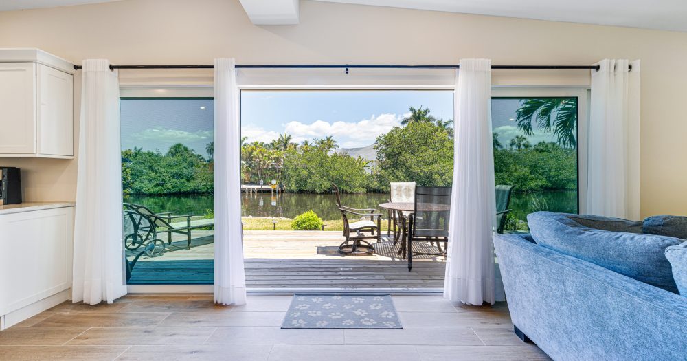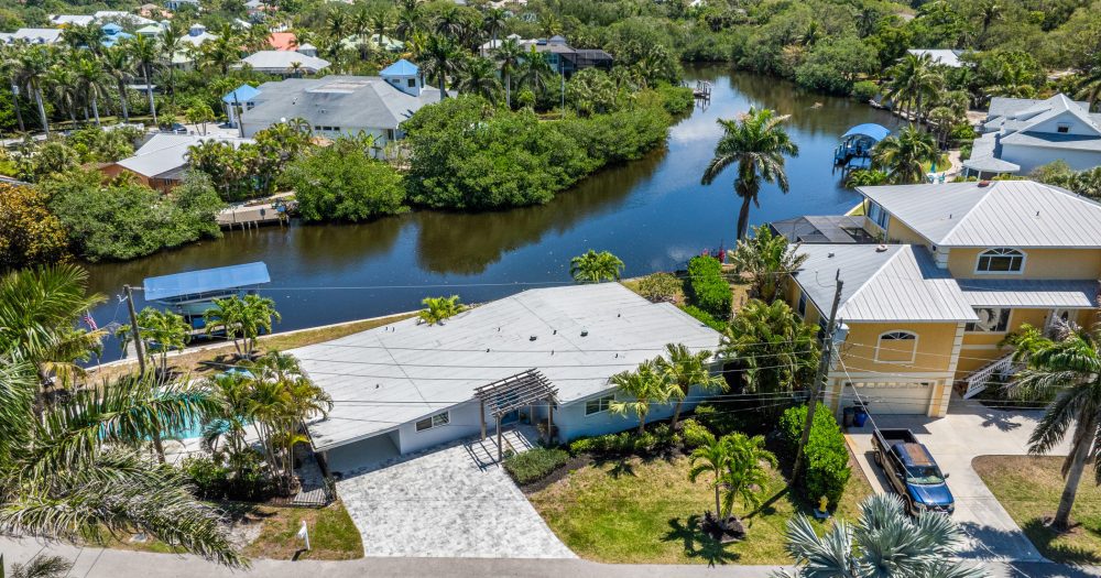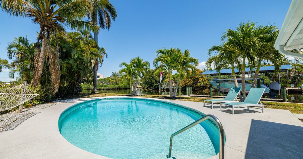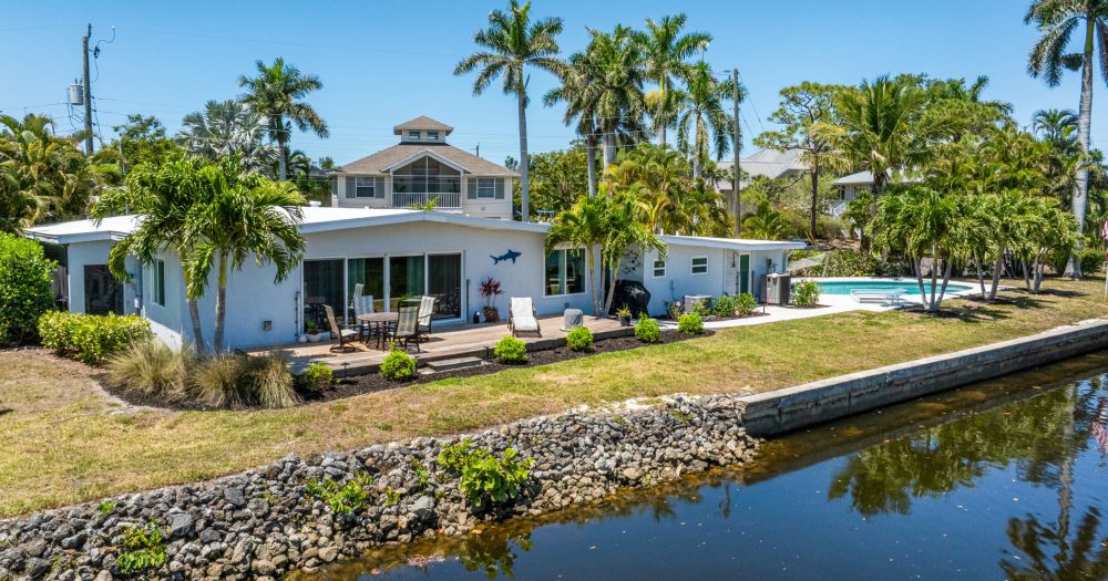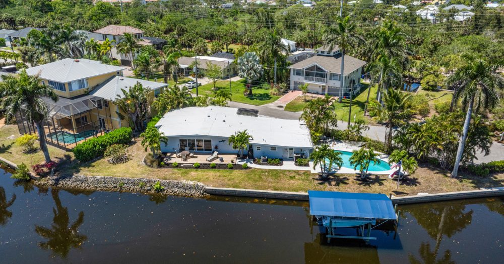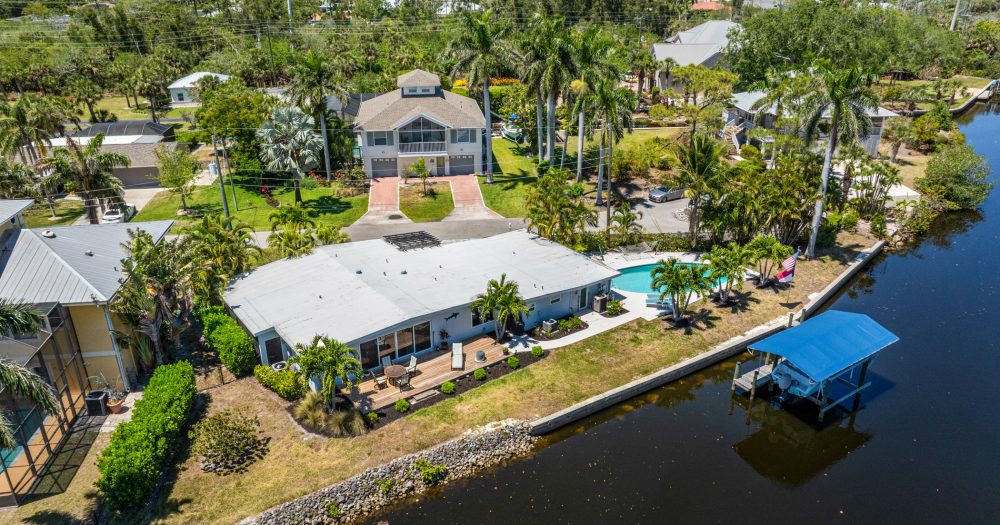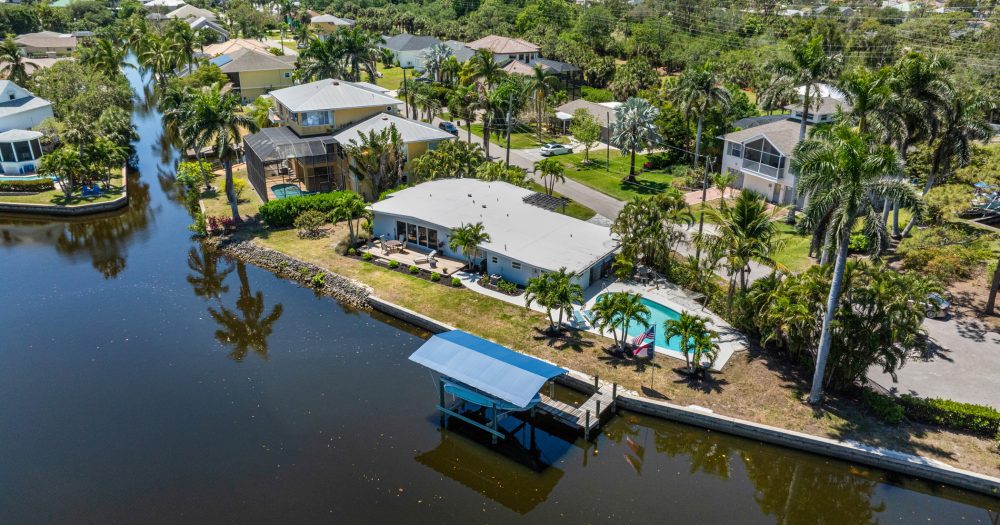 Welcome to your private waterfront sanctuary in beautiful Bonita Springs — where modern sophistication meets relaxed, riverside charm. This beautifully renovated 3-bedroom + den, 2.5-bath home is the perfect blend of refined interior style and breezy, outdoor adventure. Step inside to discover a thoughtfully updated, elegant interior featuring sleek finishes, clean lines, and a serene, coastal-inspired palette. The open living space flows effortlessly into a bright, modern kitchen, ideal for hosting friends or enjoying quiet evenings with family. Out back, paradise awaits. Lounge by the sparkling pool, or head to your private dock for a sunset cruise to the Gulf. Whether you’re soaking up the sun or savoring quiet mornings on the water, this turnkey property embodies the best of Southwest Florida living. This home has been thoughtfully upgraded with smart, storm-ready features to offer security and resilience for the future. Outfitted with hurricane-impact windows, a custom Hammerhead flood gate system, and waterproof exterior outlets, you can rest easy with peace of mind, no matter the weather.