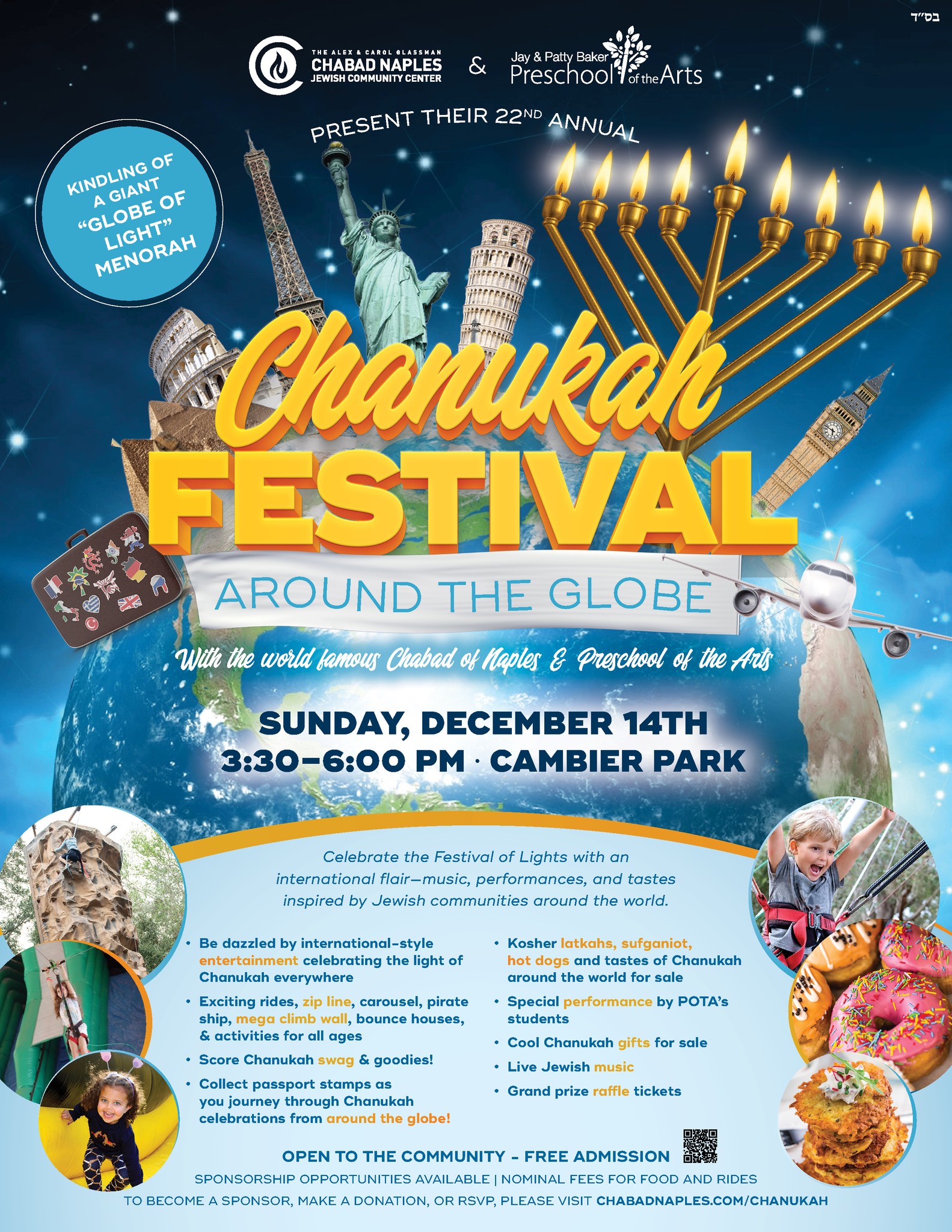 Together we’ll light the giant Globe of Light menorah and celebrate as one community.