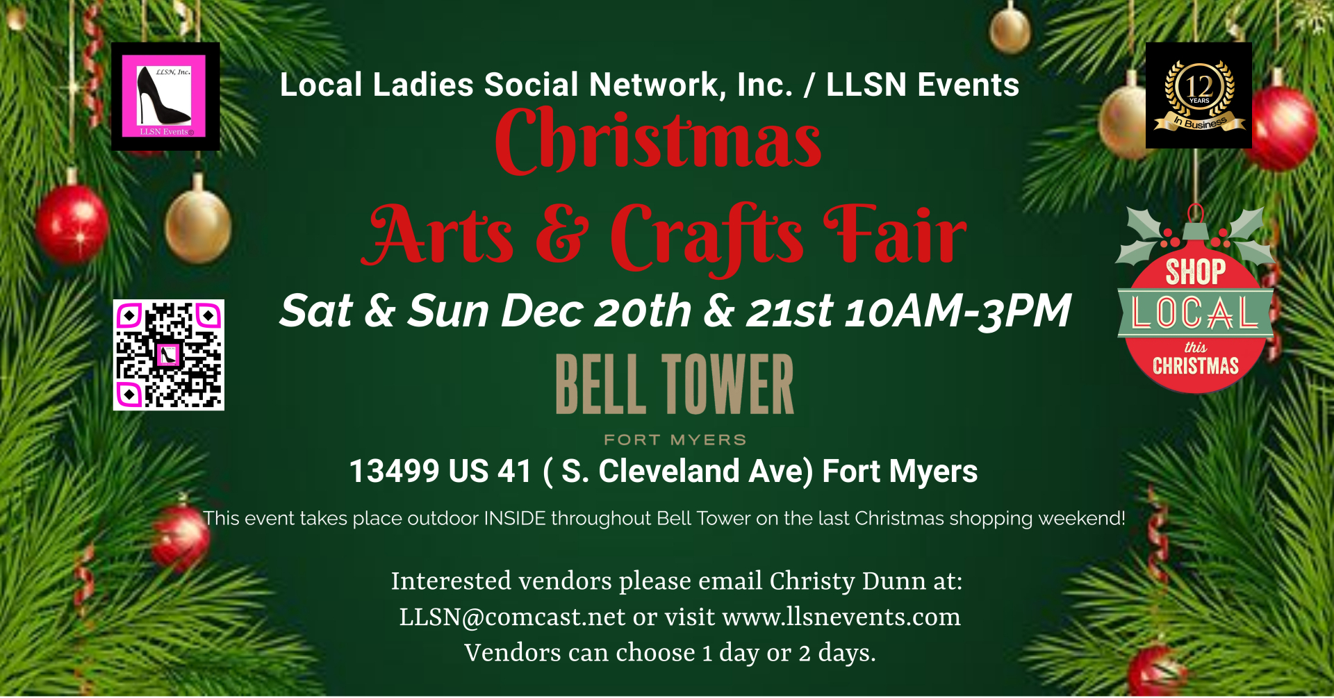 Save the date! Click interested or going to receive a reminder notification. Join us on the last Christmas shopping weekend at the Christmas Arts & Crafts Fair at Bell Tower Shops. Come finish your holiday shopping with us! Saturday & Sunday December 20th & 21st from 10AM-3PM You’ll find local vendors, crafters & artists selling a variety of items. The fair takes place inside Bell Tower in the center concourse. 13499 US 41 (S. Cleveland Ave) Fort Myers. Come enjoy all that Bell Tower has to offer!