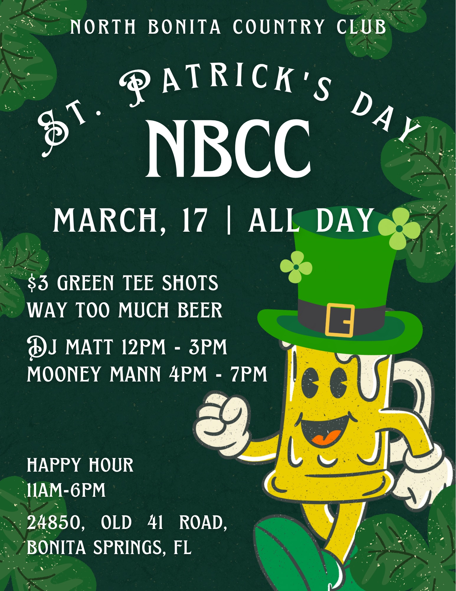 Lucky you the best place to be this St.Patrick’s Day is right here at North Bonita Country Club! Come Shamrock with us!