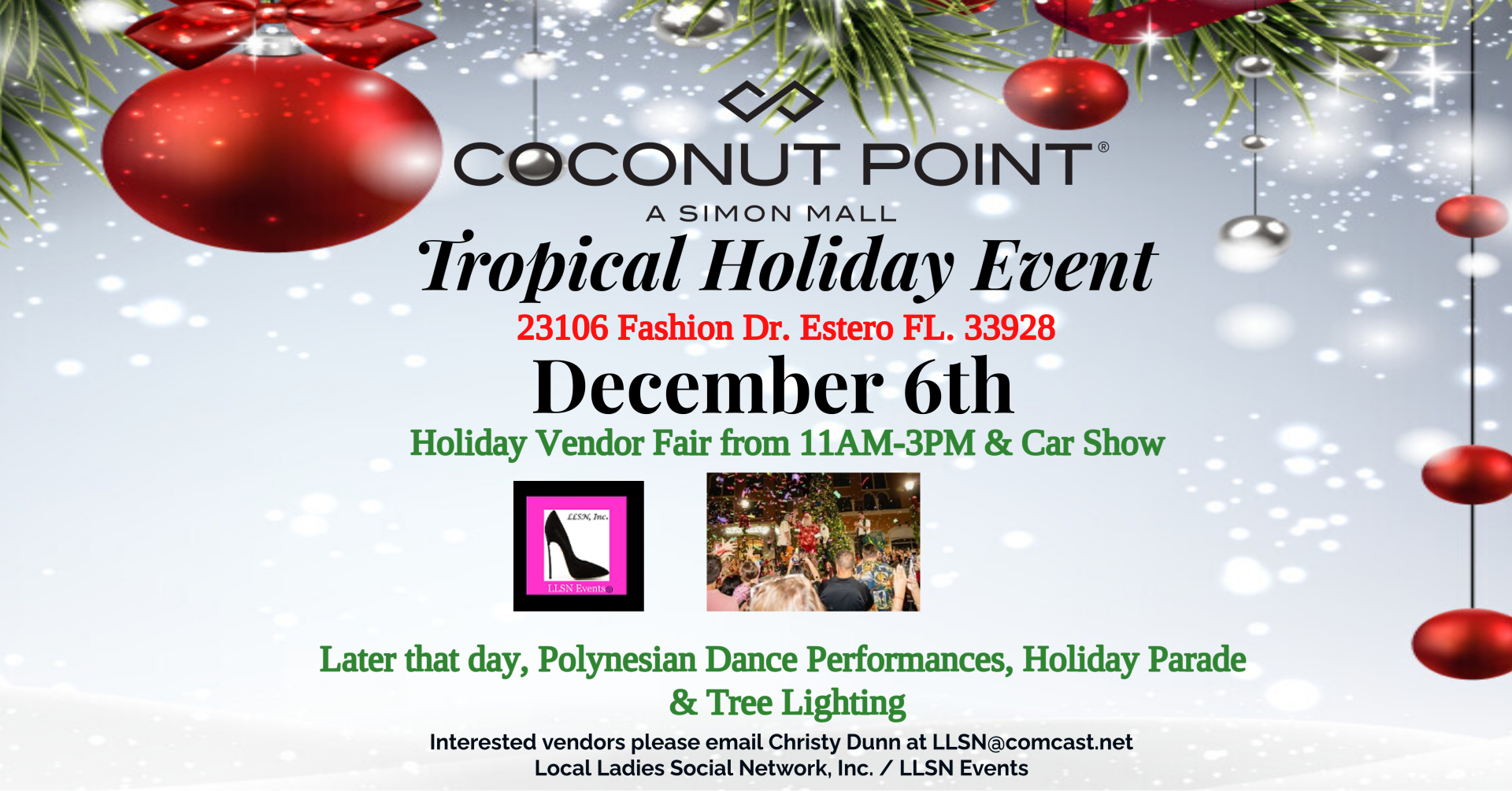 Coconut Point 23106 Fashion Drive, Estero, FLJoin us for a day of tropical fun and festive cheer! The excitement starts with a Car & Truck Show starting at 11AM & a Holiday Vendor Fair from 11AM-3PM where you'll find unique art, crafts and holiday gifts! At 5 PM, Fashion Drive comes alive with Polynesian and tropical dance performances, live steel drum […]