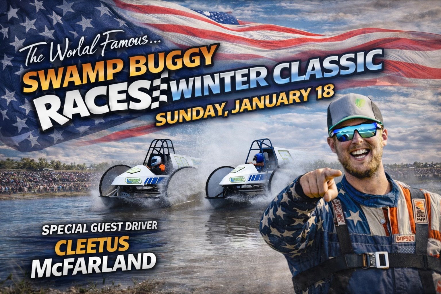 The Florida Sports Park 8520 Rattlesnake Hammock Rd, Naples, FLSWFL! GET READY! Cleetus McFarland is about to be rippin' around the Mile O' Mud like a bald eagle! Special guest driver- Freedom Factory owner and Youtube sensation, Cleetus will take over the pro-modified machine Rubber Duck, #50 this Sunday in the Winter Classic at The Florida Sports Park! Get tickets now- https://www.tickettailor.com/events/swampbuggy Tickets available at the box office on race day!-Gates Open at 10:00 […]