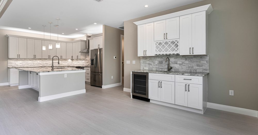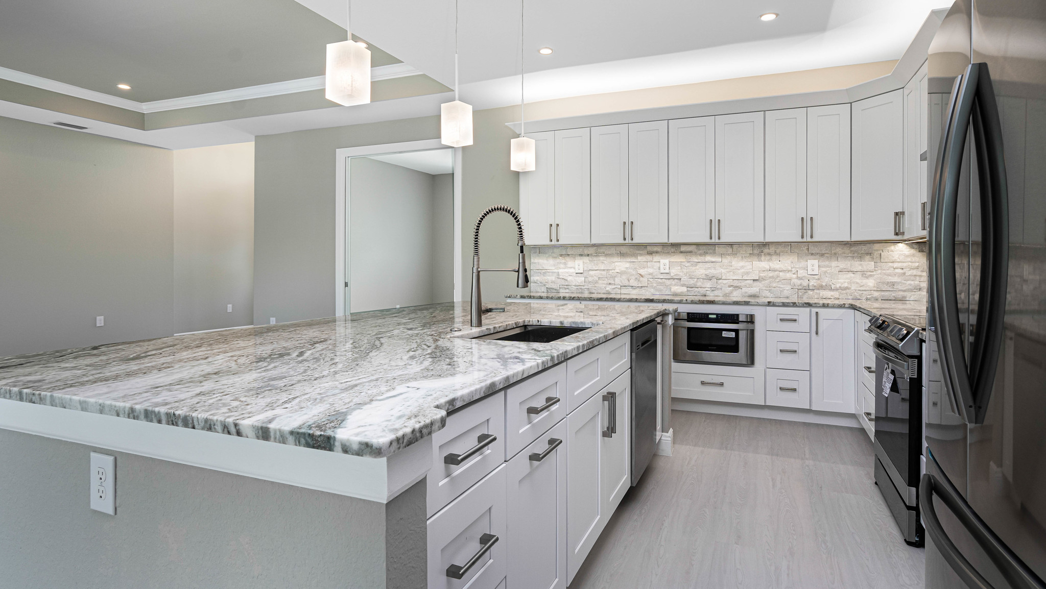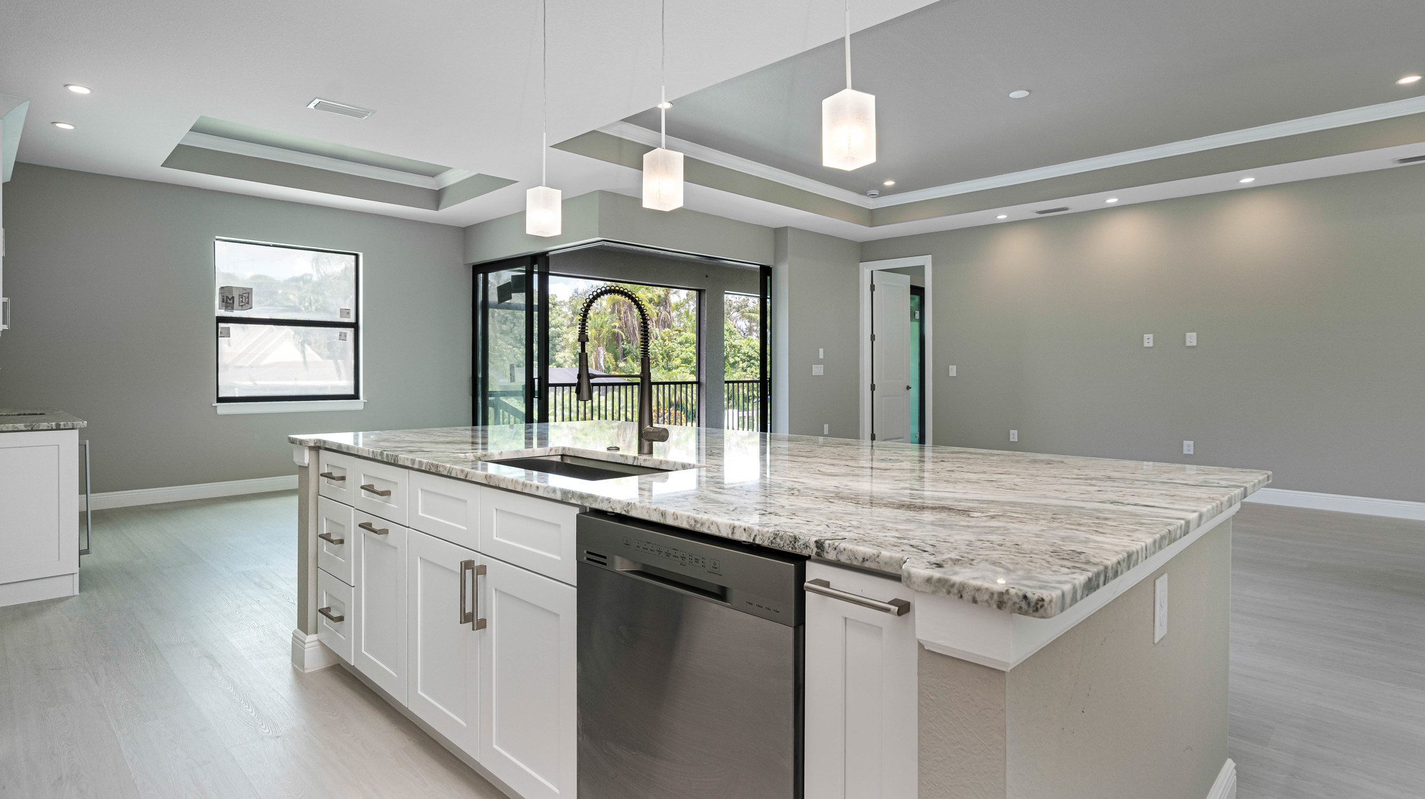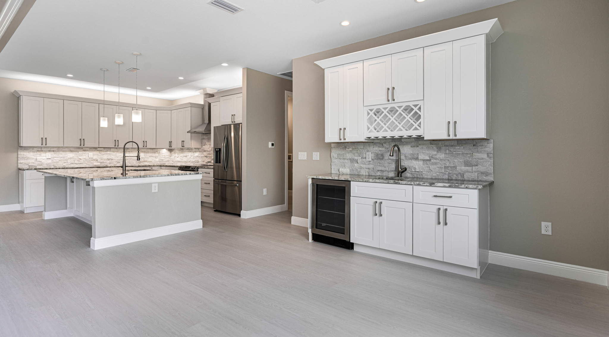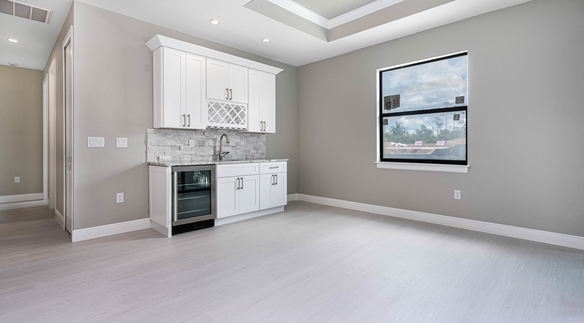 The bright interior boasts luxurious finishes from top to bottom, starting with soaring, tray ceilings and crown molding. The spacious kitchen is anchored by an oversized island with high-level granite and 42 inch cabinets. A beautiful wet bar leads out to the screened, paved patio, creating a seamless indoor-outdoor living space- perfect for entertaining. The backyard was designed for a simplified pool installation and the dock was built to incorporate an elevator boat lift, giving the first owner of this home the ability to customize with ease. This home was built by a Bonita-based, family builder with amazing attention to detail. The location, construction and level of finish of this home make it unparalleled to anything on the market. |
