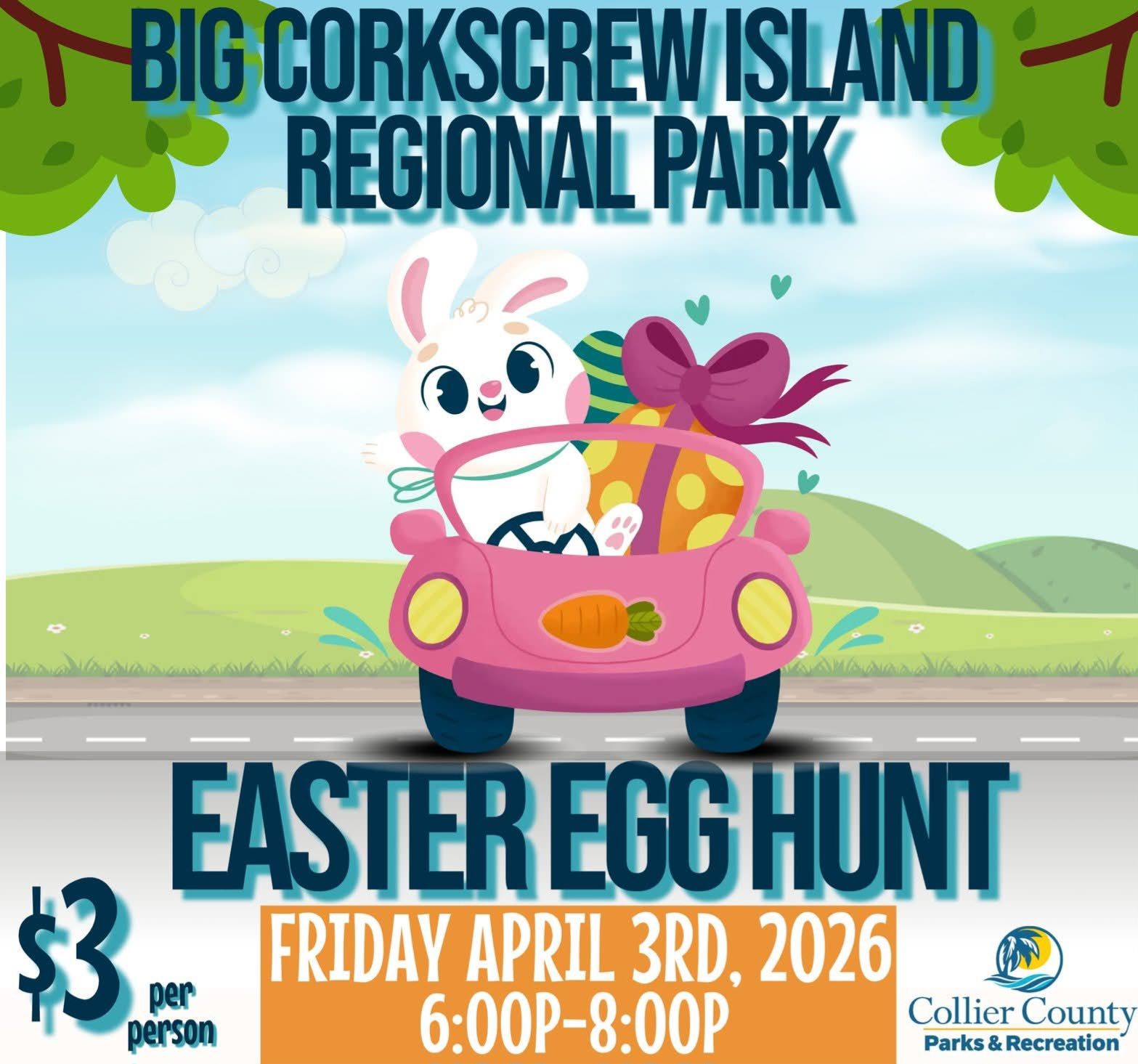 Big Corkscrew Island Regional Park 825 39th Ave NE, Naples, FL, United StatesFriday, April 3rd, 20266pm-8pm $3 per person.*Egg hunts are separated by ages from babies who can walk/crawl up to age 17!Online registration recommended. Big Corkscrew Island Regional Park will be hosting an Easter Event which will include music, food, games, prizes, inflatables and of course an egg hunt, so be sure to bring your own […]